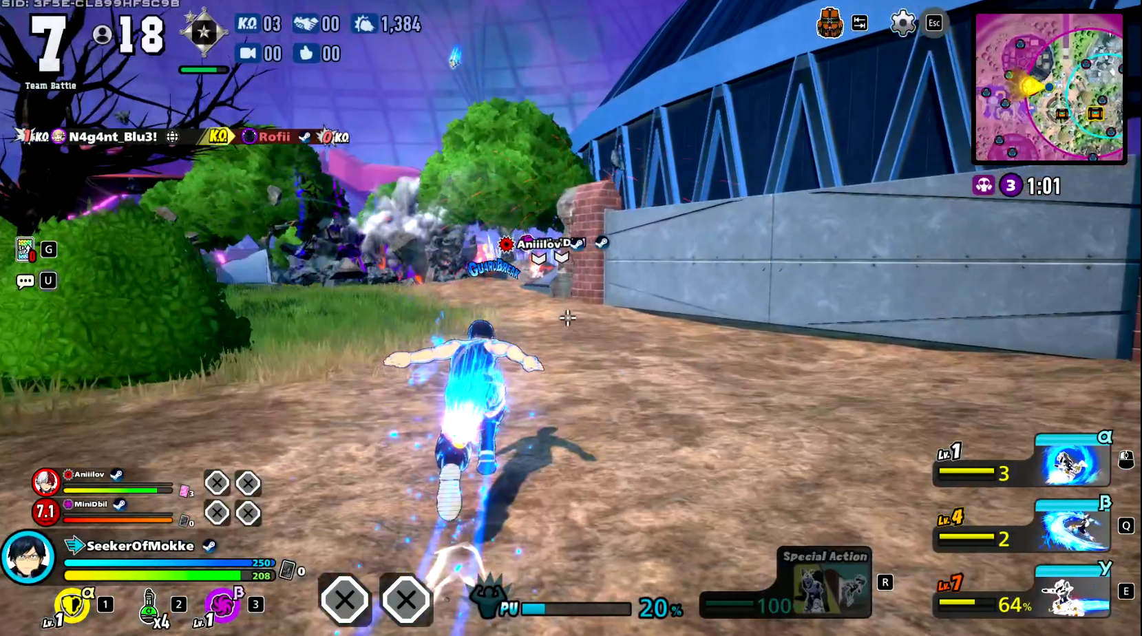 Here you can create or join "rooms" (the latter can be done by inputting the room's ID code), spaces that can host players to make your own matches or participate in the ones organized by other people. Here you can choose which people will be in which team, as well as which people will remain on Stand by and which will simply spectate the match through the Observer Mode. The amount of things you can customize in this gamemode is quite limited. For instance, the only available mode you can choose is 3-Player Battle. You can technically make matches where there's teams of two people or one people by simply not filling all three team slots, but you will be limited to 8 teams, so if you want to simulate a solos match, only 8 people can play it.