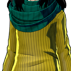 A simple outfit with an accent piece around the neck and a bit of youthfulness.